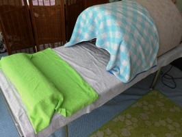 A ドームサウナの場合は普通のサウナと違い41度前後までしか温度は上がらず寝て行う為血圧が 極度に高い場合を除いて入る事が出来ます。